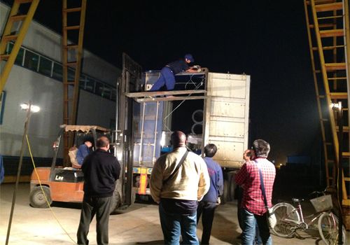 下圖為發(fā)往尼日利亞客商的日產(chǎn)50噸木薯淀粉加工設(shè)備集裝箱現(xiàn)場,發(fā)貨期間,外國客商監(jiān)裝,四達車間人員披星戴月全力以赴,積服從調(diào)配,6個集裝箱順利完成裝箱